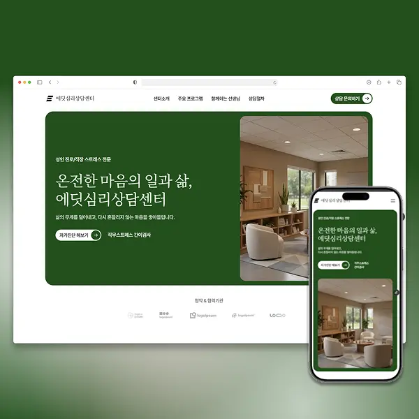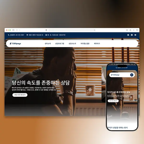 상담센터 홈페이지에 꼭 필요한 구성만 담았습니다.